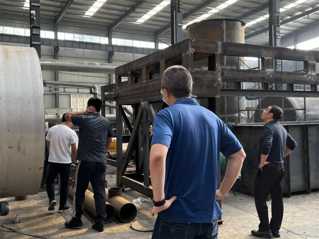 業(yè)務(wù)經(jīng)理為客戶詳細(xì)介紹炭化設(shè)備配套設(shè)備